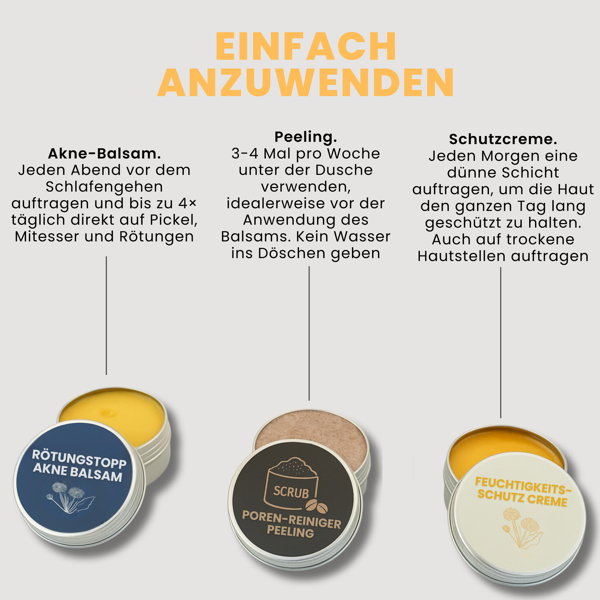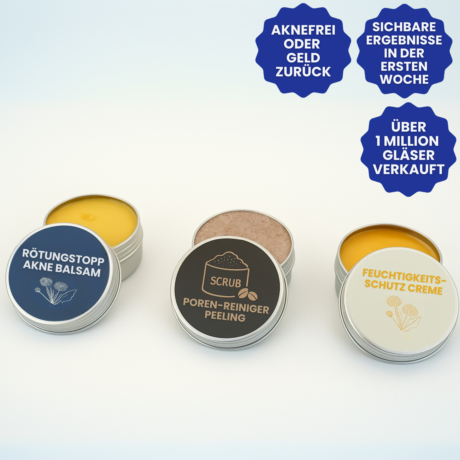 Das Set stärkt die Hautbarriere und hilft der Haut, sich selbst zu regulieren. Viele können nach einigen Wochen die Anwendung reduzieren oder pausieren, ohne dass die Akne sofort zurückkommt. Es macht nicht abhängig wie manche medizinische Cremes.